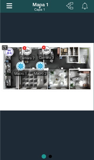 Para el Cliente móvil en el mapa se pueden mostrar iconos de los dispositivos siguientes: videocámaras, rayos, relé. Además, en el mapa se pueden ubicar los iconos de  macrocomandos (véase Escalamiento de mapas y de grupos de objetos).
