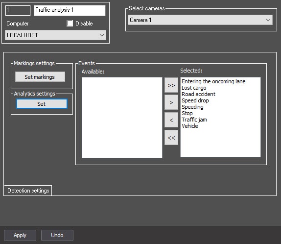 Configuring the video analytics to work with the Traffic analysis module is complete.