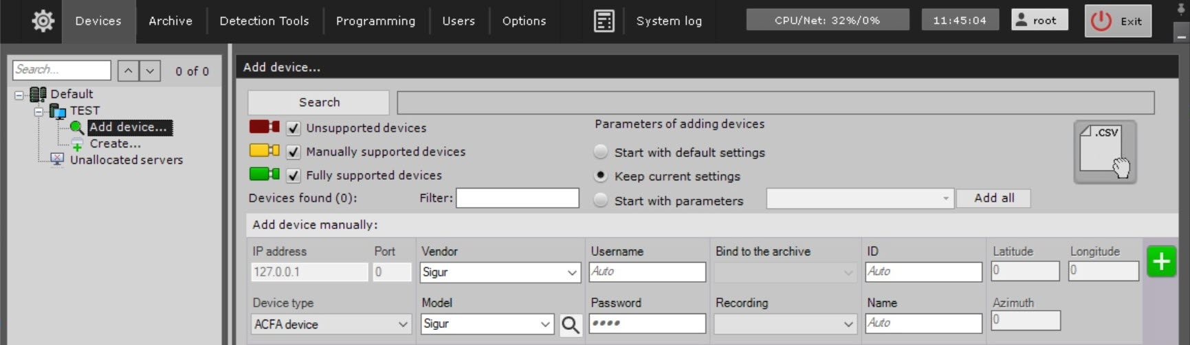 To add the Server "Sigur" integration module to the system, do the following: