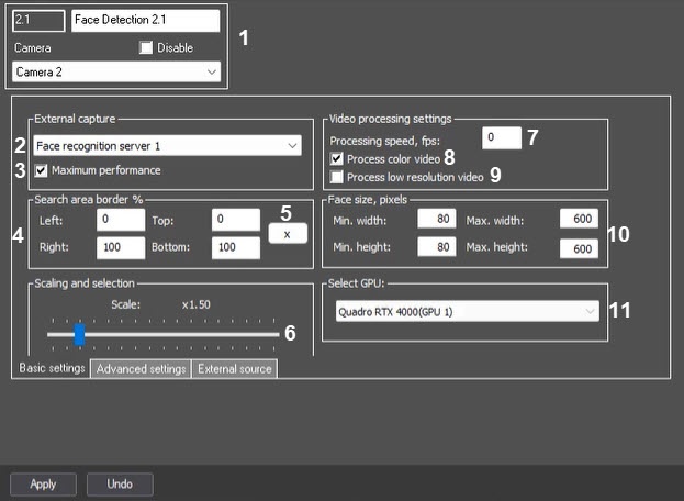 Setthe maximum quality of face capture and recognition is provided by using all available processor cores and increasing RAM consumption