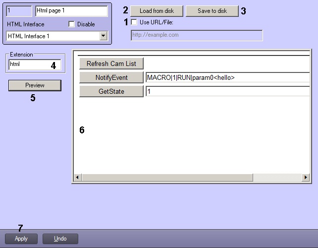 5. Click the Preview button to display the selected HTML page (5). As a result the page content will display in the preview box (6).