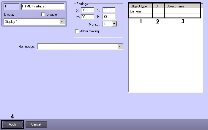 - When left clicking in the Object name field it is automatically filled with the name of the object with this ID (3).