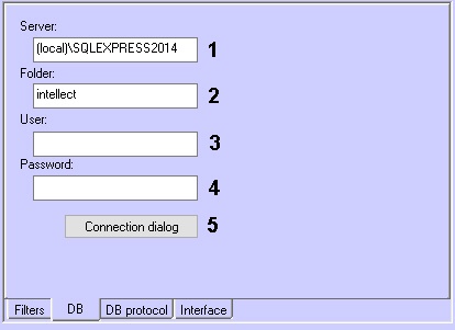 1 | Server | Enter the value into the field | Sets the name of the database Server, in which the required Event Viewer database is stored (if extracted to a separate DB) | Latin, Cyrillic and service characters | Name of the Server used by the Event Viewer database (if extracted to a separate DB) | - |
