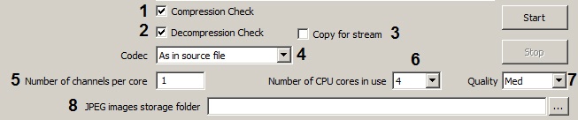 7. Select the required value of frames compression from the dropdown list Quality (inversely to compression level) (7).