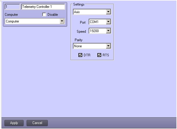 - Other settings of this object are ignored by system because the control panel of Axis T8310 telemetry is connected to the Server using USB interface.