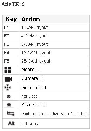 Key codes of AXIS T8312 control panel: