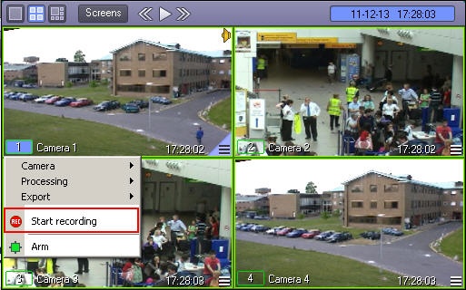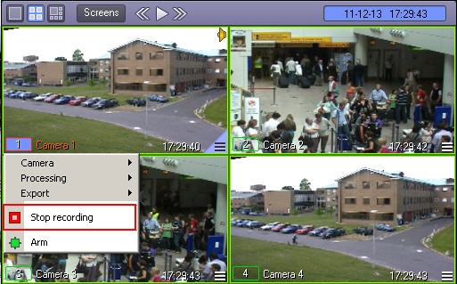 Surveillance camera recording is indicated by the camera number indicator border in the video surveillance window of the camera.