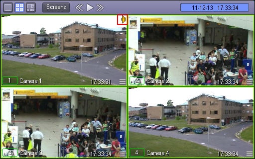 The synchro audio recording and monitoring indicator is placed in the top right corner of the surveillance window.