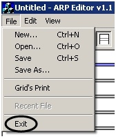 1. In the system menu of the ArpEdit utility, in the File heading, select Exit.