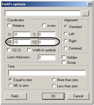 2. If the size of the object will be given in characters [symbols], then check the Width in symbols box (9).