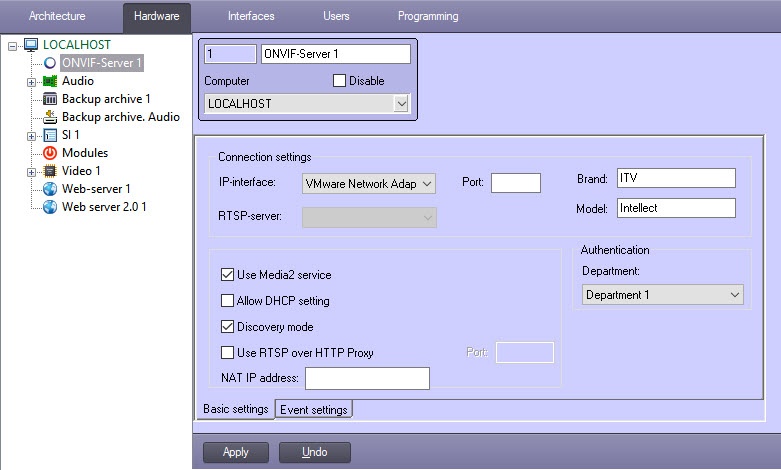 The ONVIF-Server object is now configured. Now it is possible to configure getting video using the ONVIF-Server module.