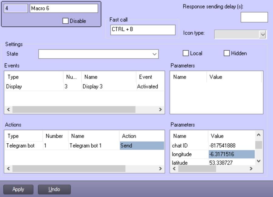 Intellect allows sending text messages, images, or geolocation to Telegram chat on any event from any object created in the Intellect objects tree. After configuration, the message sending is initiated by a macro or a script from Intellect.
