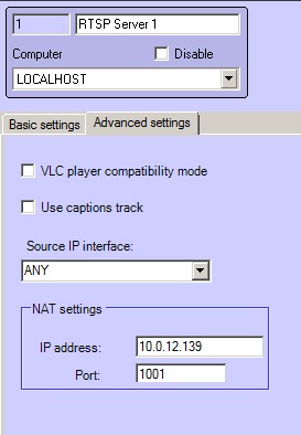 For example, the following NAT parameters are specified on the RTSP Server object settings panel: