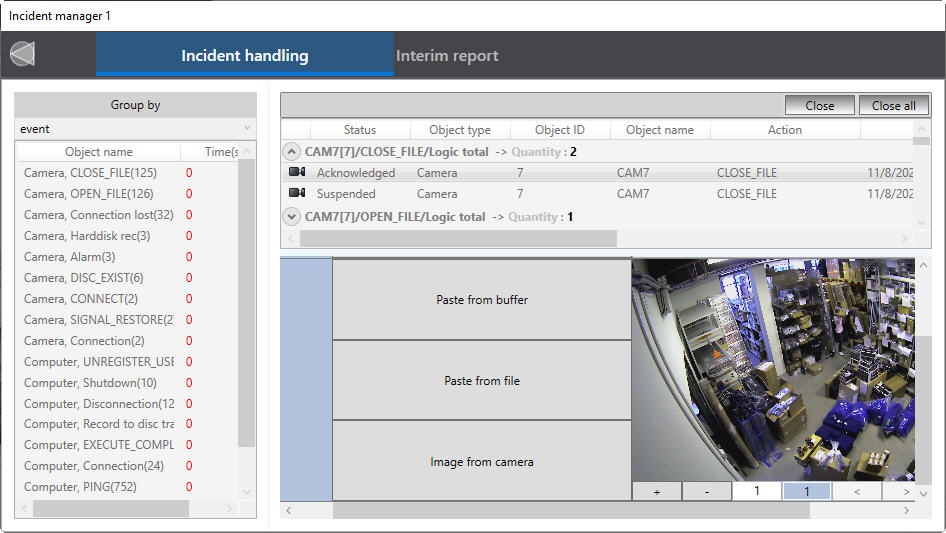 - generating a report on the event and operator's actions.