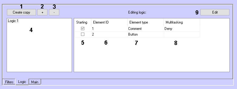 4 | List of logics | Select the value from the list | Selectes the logic which elements are displayed in the list on the right | List of the created logics | - | Depends on the number of the created logics |