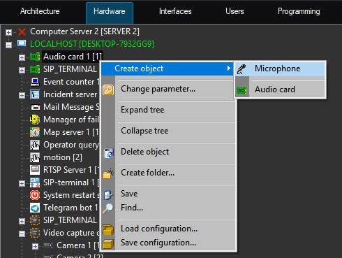 The Object settings panel is used to activate and configure the object selected in the objects tree.