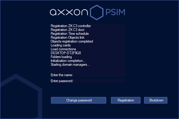 To start Axxon PSIM after entering the new password, click the Registration button.