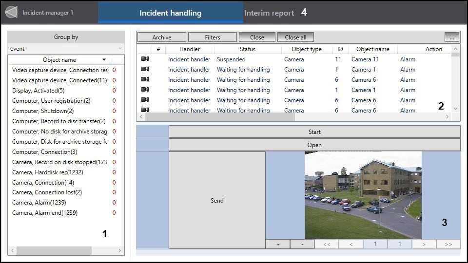 The Incident manager is used for processing events and generating reports (see Events control and processing using the Incident manager).