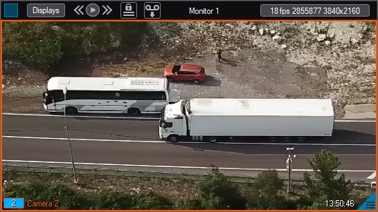 If the additional Video surveillance monitor is configured and has the Active camera mode enabled (see Configuring the display mode of camera windows), and if the automatic video stream selection is configured (see Configuring automatic selection of video stream for display), then when scaling the video image in this Video surveillance monitor, the video streams will be switched. However, if the maximum resolution video stream is used initially, the video stream will not be switched.