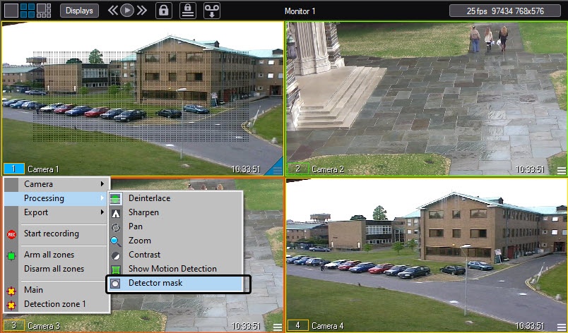 To edit detection tool's masks, go to the Surveillance windows, Processing submenu.