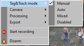 Use the Tag&Track Mode menu item in the video surveillance window functional menu to switch modes.