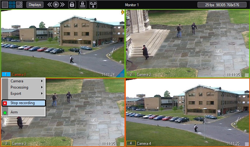 The operator can stop video recording forcibly in any mode and at any time with the Stop recording item from the functions menu of the video surveillance window.