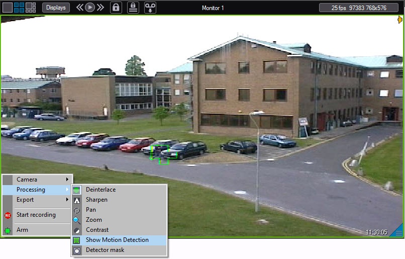 Software supports real-time dynamic outlining of moving objects via the Show Motion Detection option. The figure shows how to use the Show Motion Detection option.