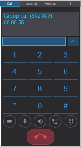 A group call is made as a regular call from the SIP-panel to a number with configured forwarding to several numbers (see Configuring numbers of SIP-terminal).