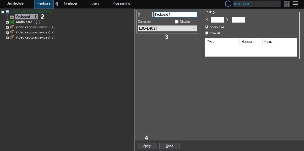 To create and set up the Keyboard system object in Axxon PSIM™ software, follow the sequence: