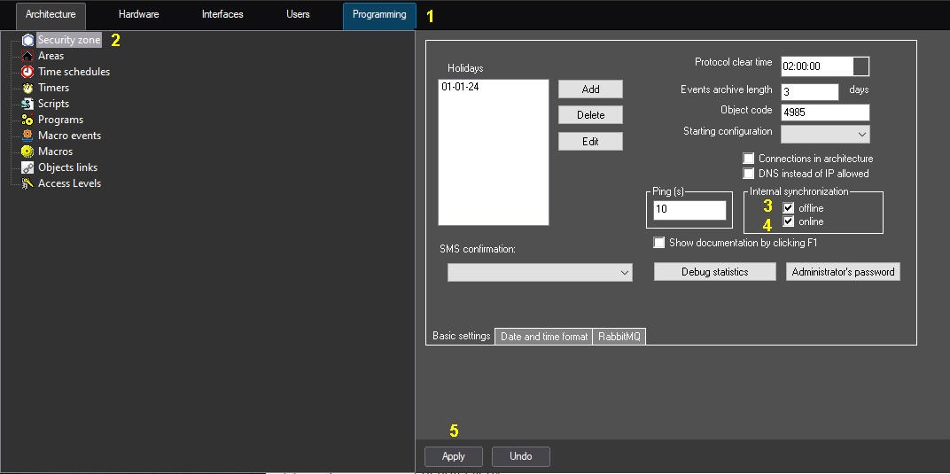 1. Go to the Programming tab of the System settings dialog window (1).