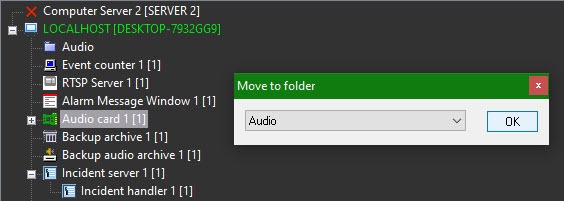 To confirm the selected folder, click the OK button. The object will be moved to this folder.