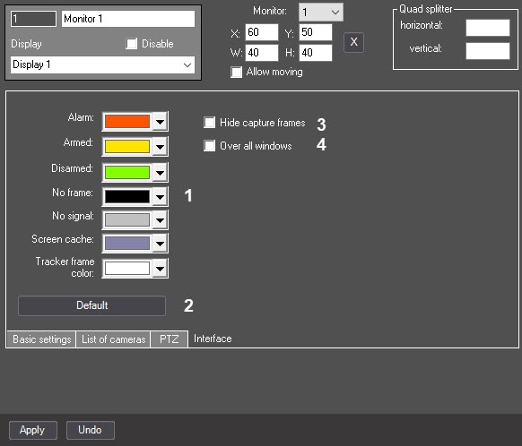 Sets the default frame colors of the surveillance window
