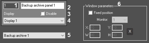 6 | The Fixed position | Set the checkbox | Allows moving the backup archive panel on the screen using the mouse | Boolean type | Clear | Set—the backup archive panel cannot be moved Clear—the backup archive panel can be moved |