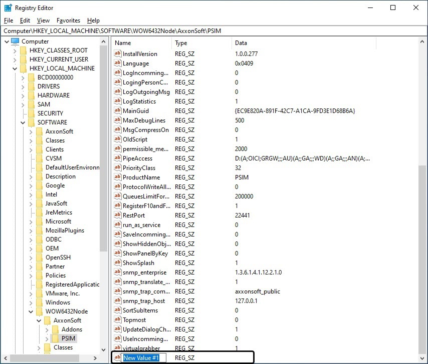 5. Assign a name to the new parameter. Enter the name in the highlighted name field, which by default reads “New Value #1”, and click anywhere in the editor window. The entered name will be saved.