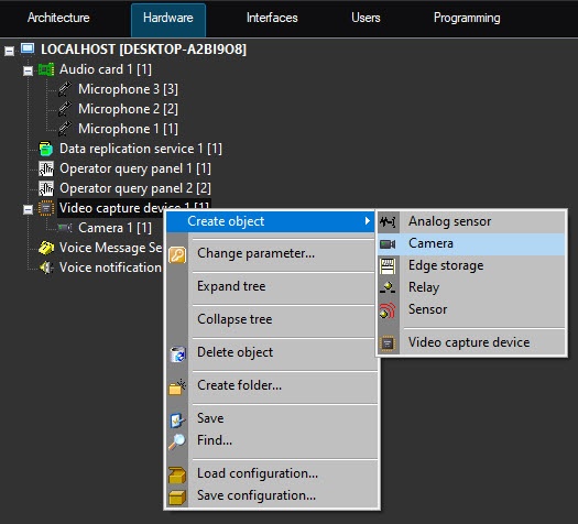 From the Channel number list, select the physical video card input to which the camera is connected (see Features of video subsystem configuration).