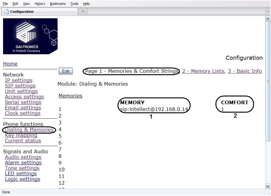 The “GAI-Tronics HelpPoint” SIP-device is configured through the Web-interface the following way:
