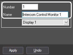 In the opened box, enter the number and name of the Intercom Control Monitor object and then click Apply.