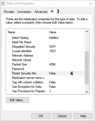 When you switch between databases using the Select data source drop-down list (see Interface elements of the idb.exe window), note that the specified parameters for connecting to the currently selected database are partially reset. This is due to the Microsoft security policy. In order for the settings in the Connection string field to be saved, do the following before you switch to the administration of another database: