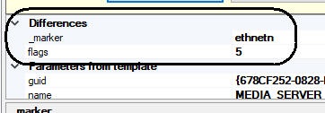 Click the Distinguish button in the Template field. As a result the parameters which values are different from those ones in Axxon PSIM software are moved to the Differences list.