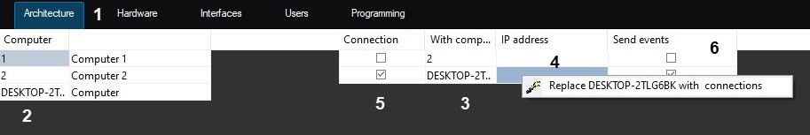 3. The With computer column displays the list of those Servers, Remote Administrator’s workstations, and Remote Clients, with which the selected server, the Remote Administrator’s workstation, or the Remote Client can interact (3).