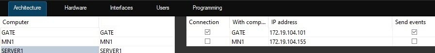 1. For the video gate (GATE), the interaction must be set with the server (SERVER1) and with the Remote Client (MN1).