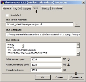 - As the result the Elasticsearch 5.2.2 (Axxon PSIM-title-indexer) Properties window appears.