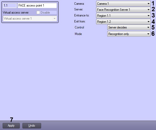 - Select the face recognition server on the basis of which the access point is to be organized (2).