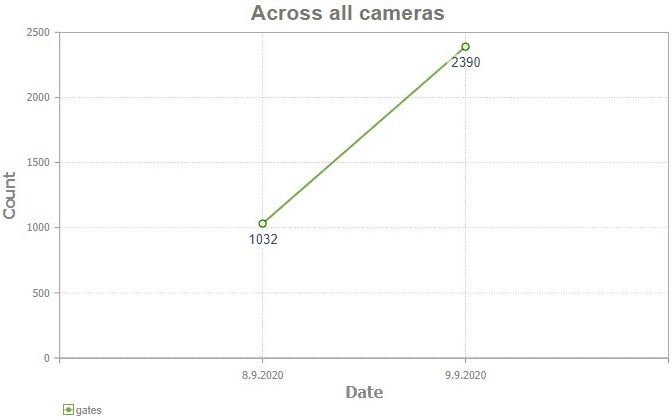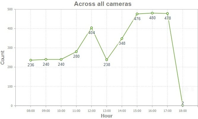 - Chart of total number of fever-screening events across all cameras by day the specified time slot.