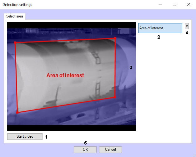 4. Select the frame in this settings window to set the area of interest. For that, click the Start video button (1).