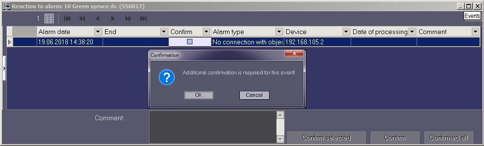Accepting an alarm
