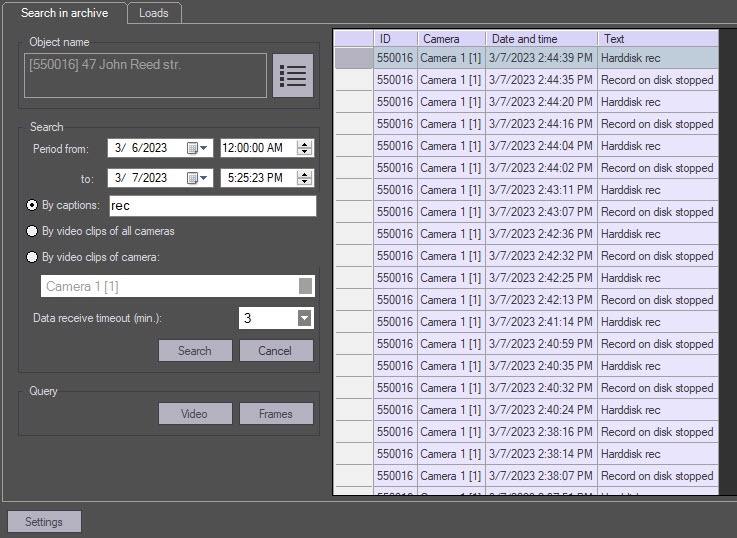 You can also make a request to the archive based on received data (see Request for video frames from an object).