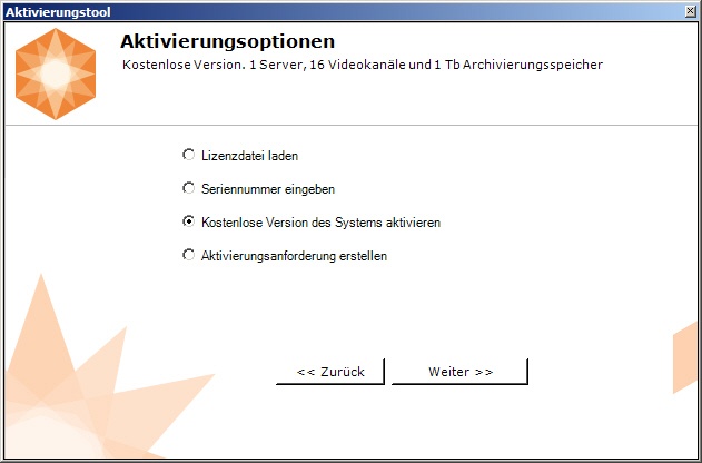 Zur Aktivierung der kostenlosen Lizenz Axxon Next Free sind folgende Schritte durchzuführen:
