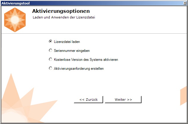 - Wählen Sie Lizenzdatei laden, und klicken Sie auf Weiter.