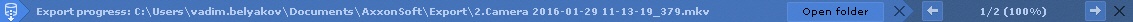 If several export processes are active, you can switch between them by clicking the buttons. The following information is displayed between them: number of the current export operation / total number of export operations (export progress for all operations).